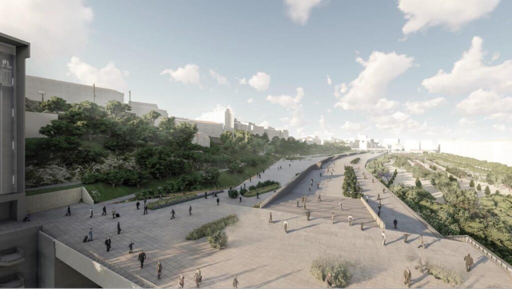 3. Cubrir vías y andenes desde la cabecera hasta la pasarela entre Alta y Castilla, integrando el ferrocarril en el tejido urbano.