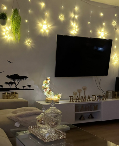 Para los musulmanes que residen en España es difícil sentir el mes del Ramadán como sí se siente en el país la Navidad o la Semana Santa con actividades y decoraciones en las calles de las ciudades que avisan la llegada de estas festividades. Por ello son muchos los musulmanes que ponen decoración típica para que el ambiente de Ramadán invada sus hogares. Siham explica que «en mí casa lo hacemos sobre todo por mí hermana de 5 años, ya que es un tema que no se habla en clase y queremos que igual que los niños cristianos disfrutan de la Navidad, ella lo haga del Ramadán».