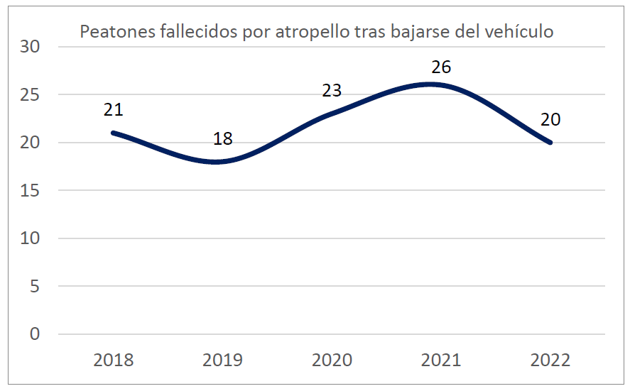 Gráfico sobre los peatones fallecidos por atropello tras bajarse del vehículo en España | DGT