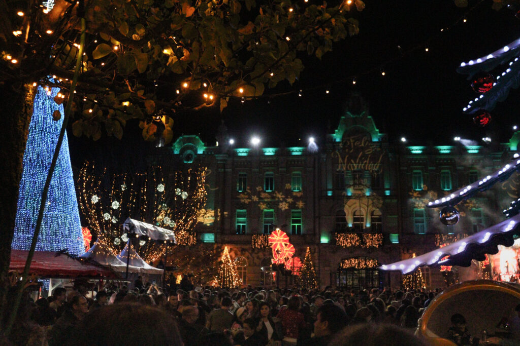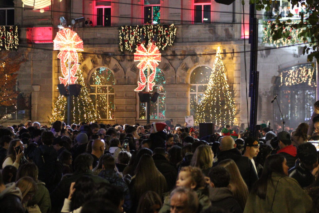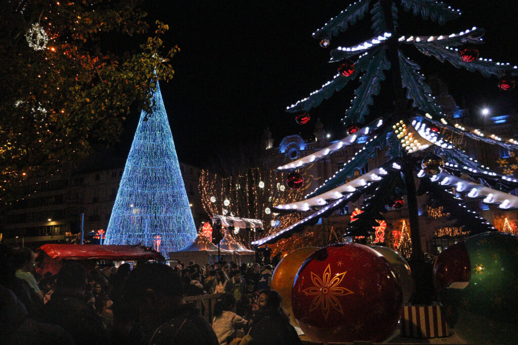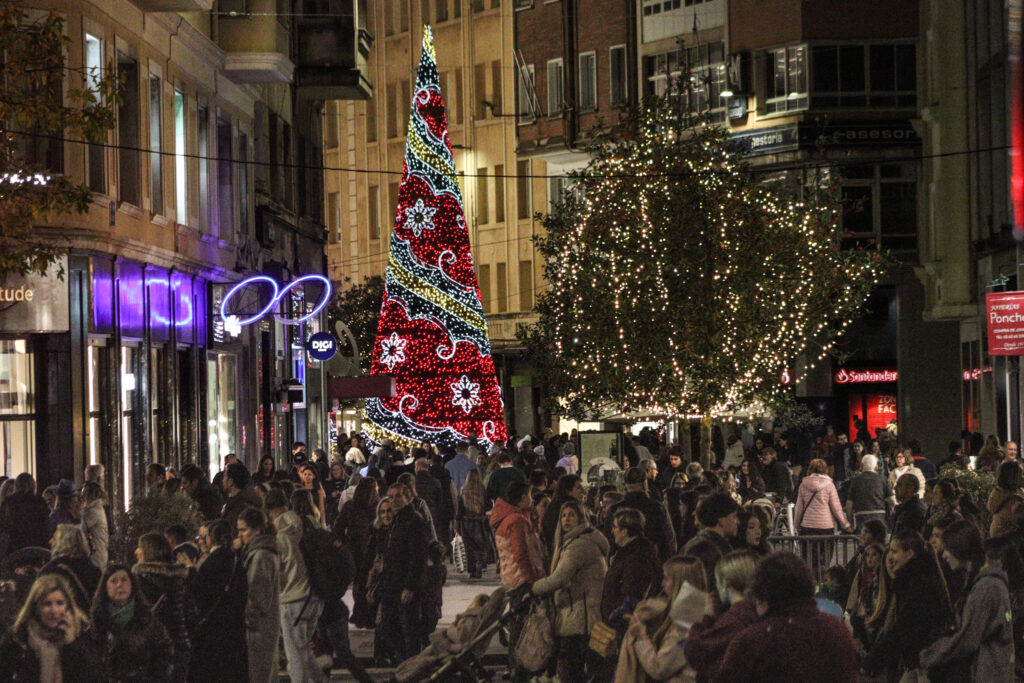 Cuatro millones de luces LED brillan ya en Santander y marcan el arranque oficial de la Navidad en la ciudad. Una hora antes del encendido, la plaza del Ayuntamiento ya estaba abarrotada de familias, niños y curiosos que no quisieron perderse uno de los momentos más esperados del año, entre música, fuegos artificiales y móviles alzados para captar el primer destello.